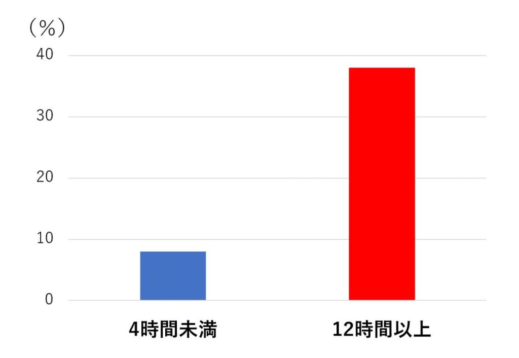 その結果、4時間未満はわずか8%にとどまり、40%近くが12時間以上という長い時間をかけて飲み干していることが明らかになりました(図4)。
