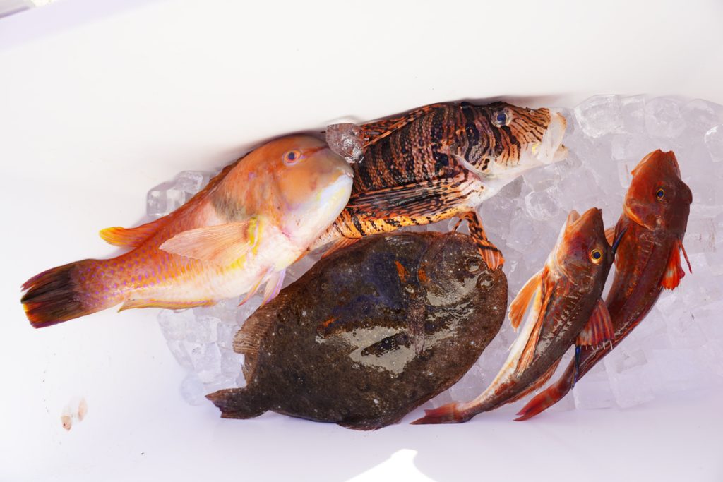 その後も、カサゴ、ホウボウ2匹と釣れていったものの、最後のほうは網に何もかかっておらず、これでおしまいかな…と思ったところで、イラという魚が! 計5匹の漁獲量でした。