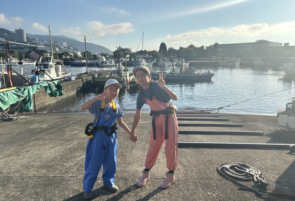 7月末、小学5年生と2年生の娘たちと体験してきました。漁船に乗るのはもちろんのこと、漁をするのも初めてです。