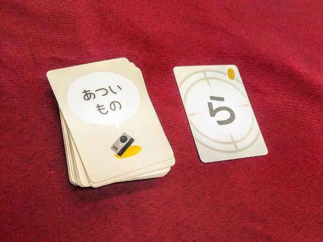 例えば、「あついもの」というお題で、「ら」から始まる言葉を考え、「ラーメン!」と一番に答えた人がカードをゲットできます。お題の中には、「自分の好きなもの」や「怖いと思うもの」など、子どもの価値観や主観に関わるテーマもたくさんあって、自由度が高く、大人がプレイしても十分楽しめます。