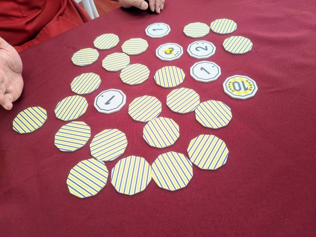 『トータス』は、記憶力と計算力を使って楽しむゲームです。遊び方はとてもシンプルで、場に並んだメダルを「神経衰弱」のようにめくり、出てきた数字を足して10になれば、そのメダルを獲得できます。