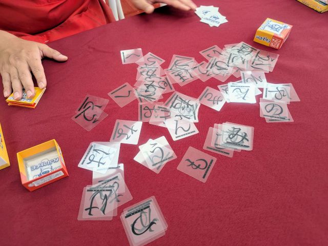 セットには、透明なひらがなカードが80枚と、「ナゾ文字」をセットしておくための専用ケースが入っています。遊び方はさまざまで、例えば3文字や4文字の言葉を組み合わせていきます。文字の向きをあえてバラバラにすることで、読み解く難しさが増して、さらに面白くなります。