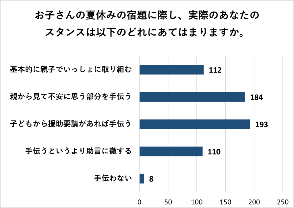 夏休みの宿題、親のサポートは「援助要請があれば手伝う」が最多!