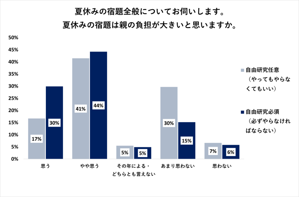 では、自由研究が「必須」か「任意」かによって、保護者の負担感にはどのような違いがあるのでしょうか。