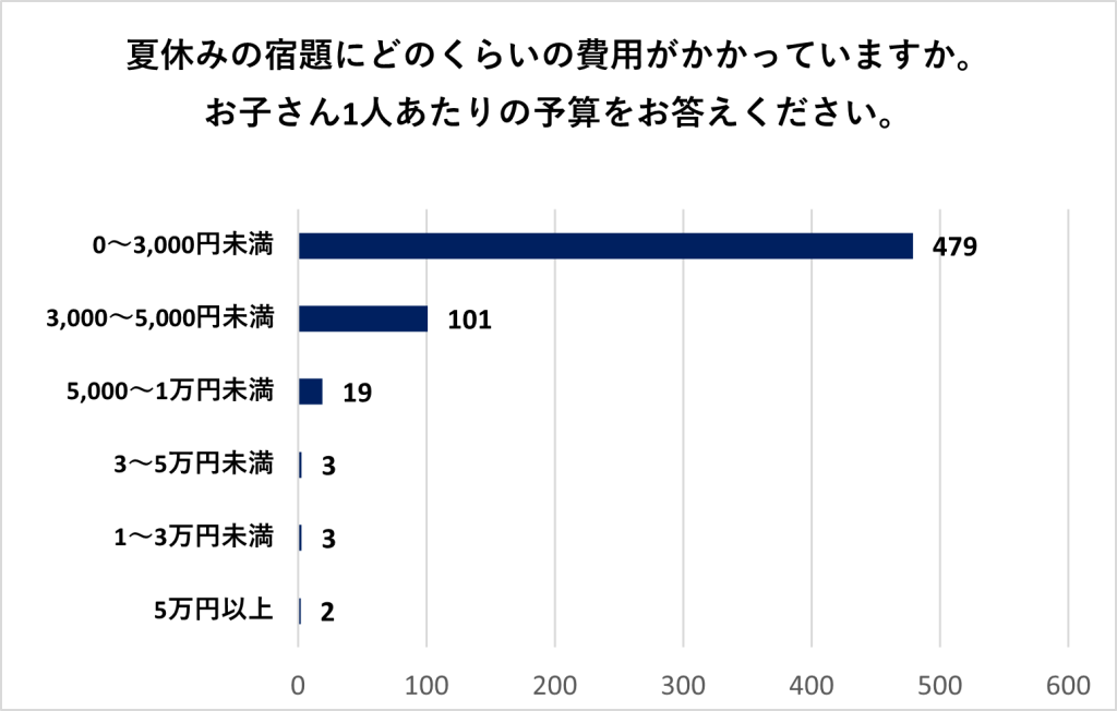 では、自由研究を含む、夏休みの宿題全体にかけている費用はどのくらいなのでしょうか。