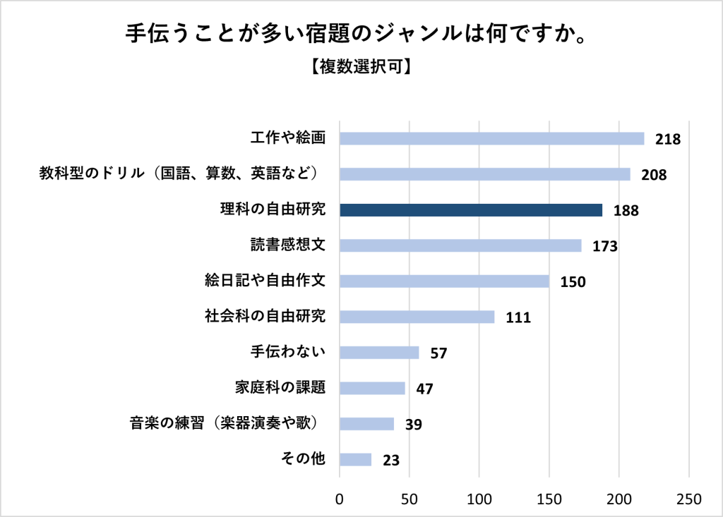 では、実際に保護者が手伝うことの多い宿題のジャンルには、どのようなものがあるのでしょうか。