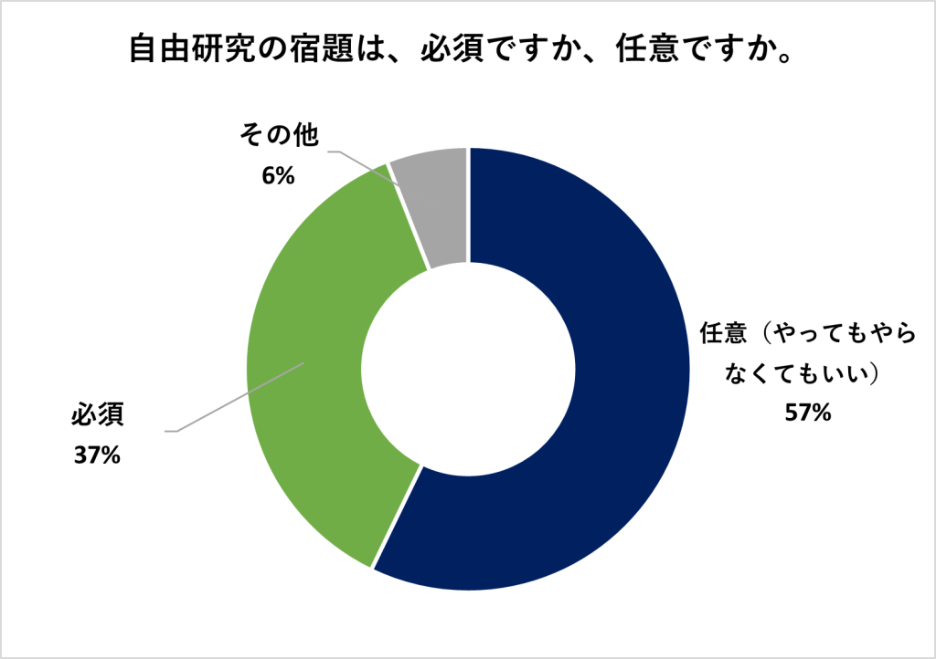 自由研究は、半数以上の家庭で「任意」扱いと回答