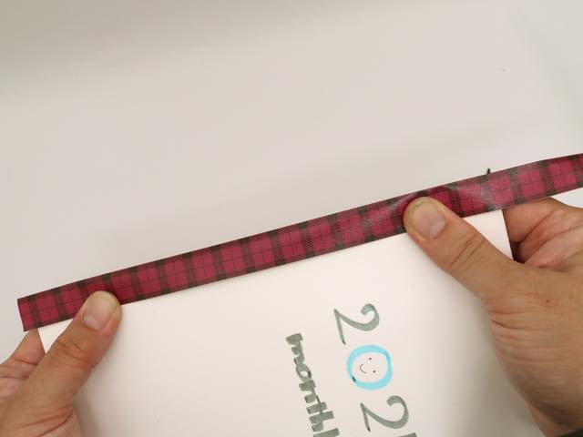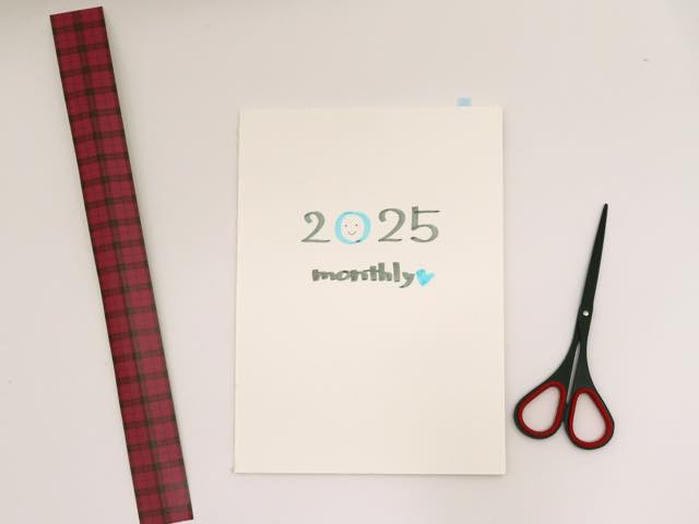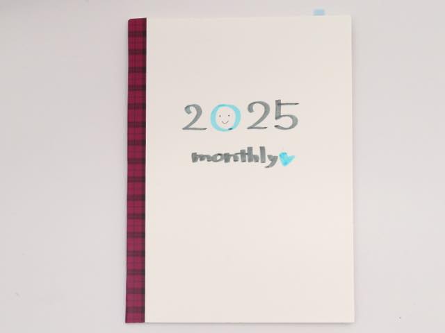 筆者の場合は、1日1ページの手帳を使っていたのですが、月間ページだけ別にしたほうが使いやすいかな? とカッターで切り分けた部分に手作りの表紙をつけました。そこに背表紙をつけていきます。