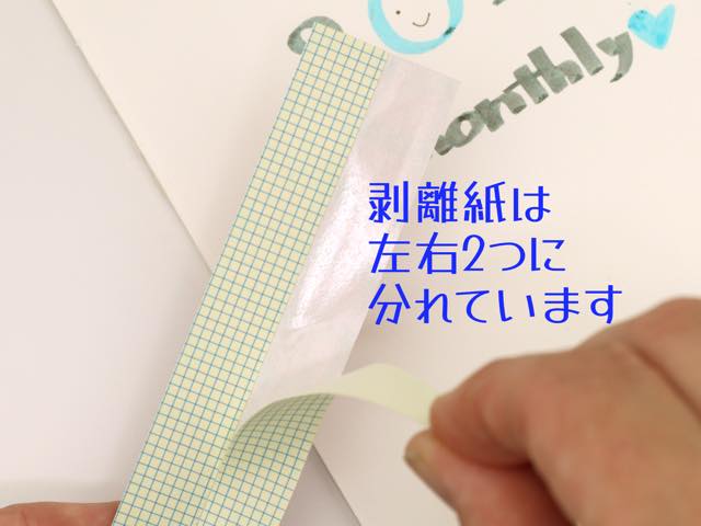 シールの剥離紙は真ん中から左右に2つに分かれているので、まず片方を剥がします。