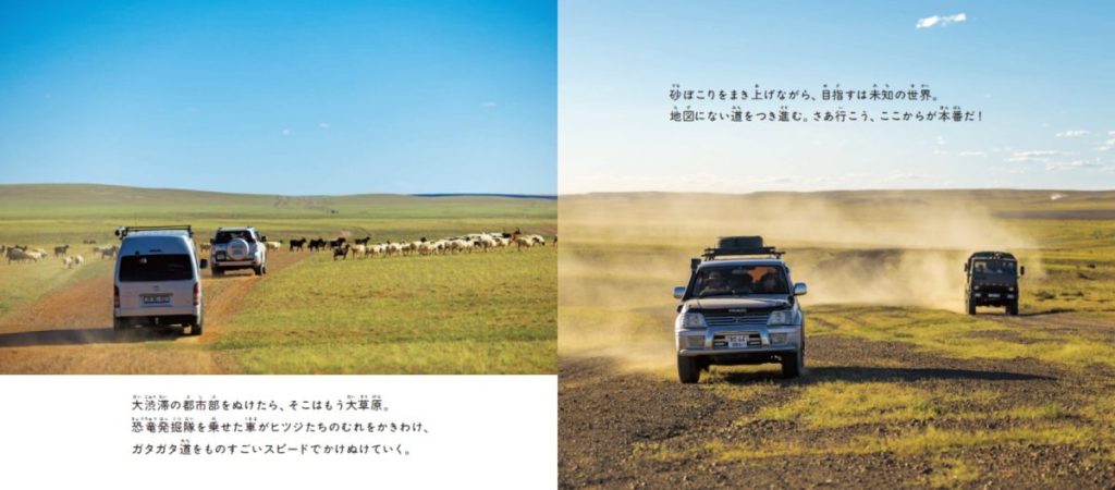 ――絵本『ほるんだ、恐竜化石! モンゴル恐竜発掘記』は、モンゴルの都市から草原を抜け、広大な砂漠を突き進んでいくところから冒険が始まるのですね。