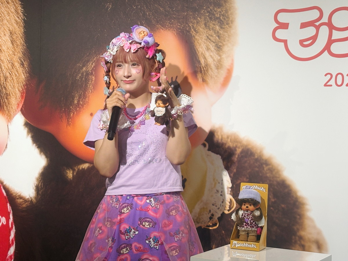 展覧会について「モンチッチと一緒に成長してきた私のような女の子、昔からのファンの方々にも来ていただきたいですし、海外の方にもこの展示をきっかけに日本旅行に来てほしい」としなこさんもアピール。