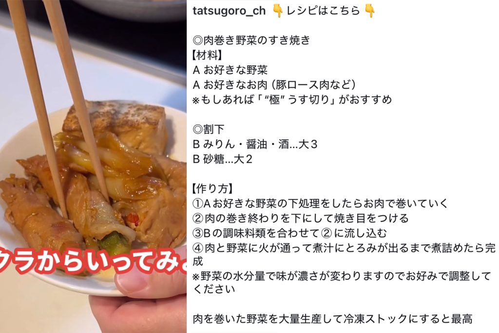 たつごろうさんの趣味でもある料理。Instagramではたくさんのレシピが公開されています。その中でも、人気のレシピ、家族に好評だったレシピを教えていただきました!