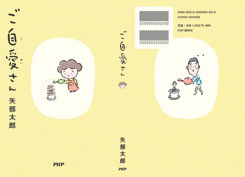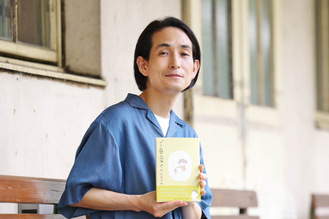 「ご自愛さん」という概念を読者の皆さんにより理解してもらいやすいんじゃないかと思いまして、キャラクター化したのが本の表紙に描いた女性です。「ご自愛さん」が自身に水をあげてやさしく労わっている姿を描いたのですが、それと同じようなことを僕もできたらいいなと思いまして、本の裏表紙には、「ご自愛さん」のマネをしている僕も描いているんです。