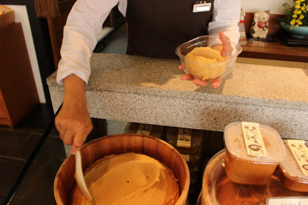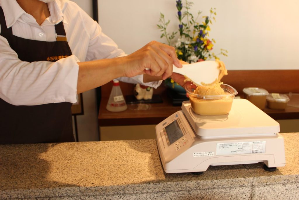 今はスーパーなどでパッケージに入った味噌を選ぶことが多く、量を量りながら買うことは少ないですよね。しかも、味見をして自分好みの味噌を買うなんて、子どもだけでなく、大人もわくわくする体験。