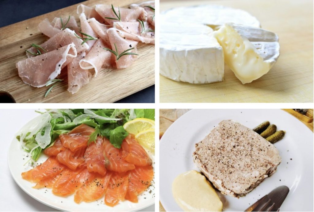 妊娠中はナチュラルチーズ、肉や魚のパテ、生ハム、スモークサーモンは避けて