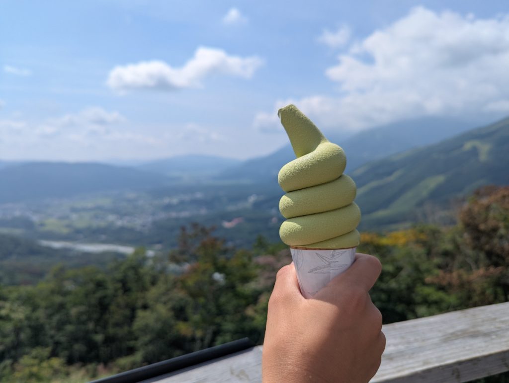 期間限定の「宇治抹茶ソフトクリーム」と「巨峰ミントティーソフトクリーム」、そして「白馬限定クロモジ」など、気になるフレーバーがいろいろあって迷ってしまいます。