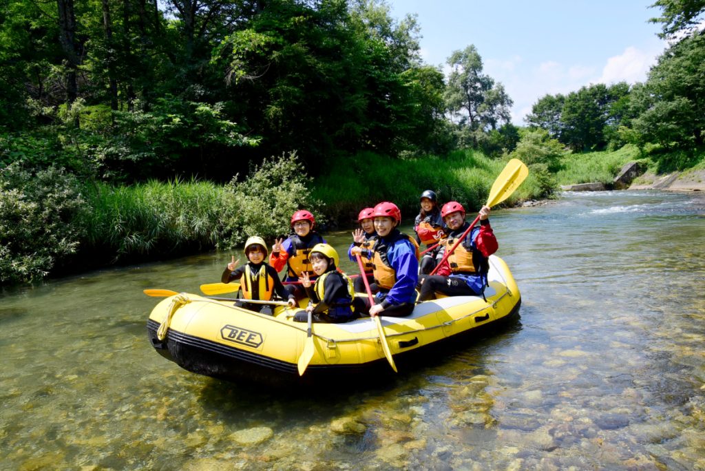 まずは、川のアクティビティの代表格、ラフティング体験から。小学生以上なら参加できるアクティビティです。