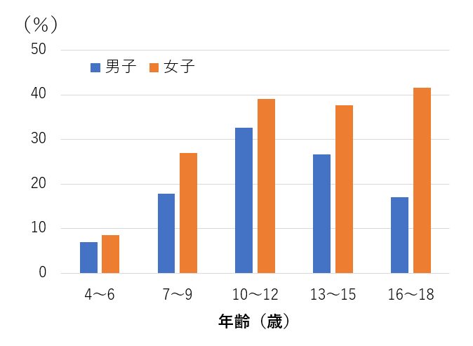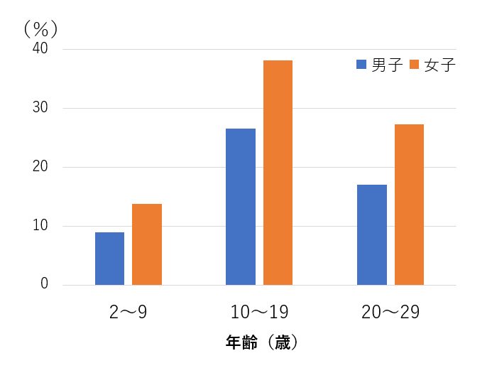 その結果、10~19歳をピークに最も多くなり(図1)、全体として女子の方が高頻度で起きやすいことが判明しました(図2)。