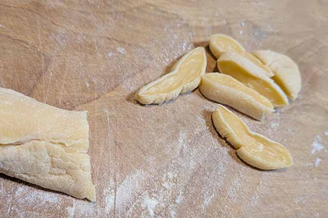 すまきを使ったギザギザパスタの成形手順