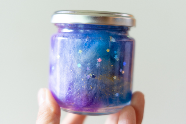 ギャラクシージャーは、ビンの中に宇宙を表現する海外で人気のクラフトです。初めて見た人は思わず「わぁ! これ、どうやって作ったの?!」と聞いてしまうような美しい宇宙を、意外な材料を使って、簡単に作ることができます。