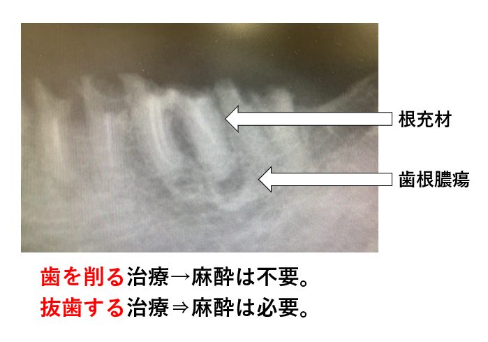このようなケースでは数日間、抗菌薬や消炎薬を服用するなどして炎症を鎮めた後、麻酔を使う治療をするのが一般的です。
