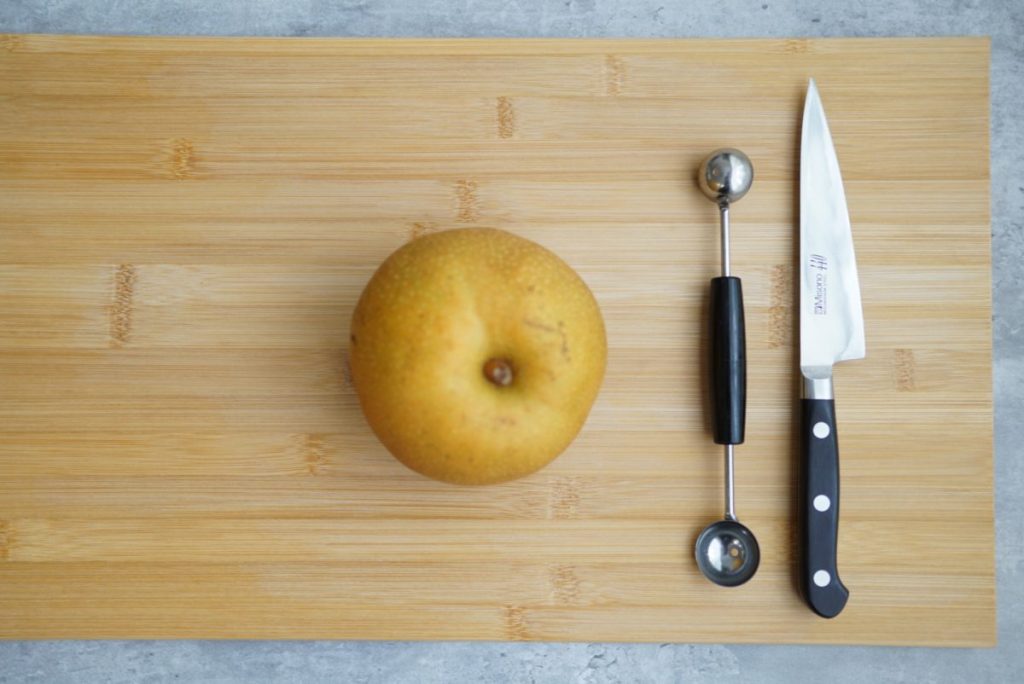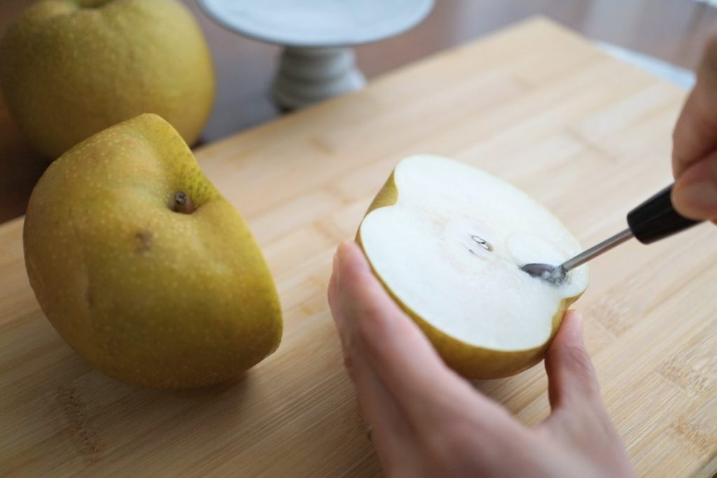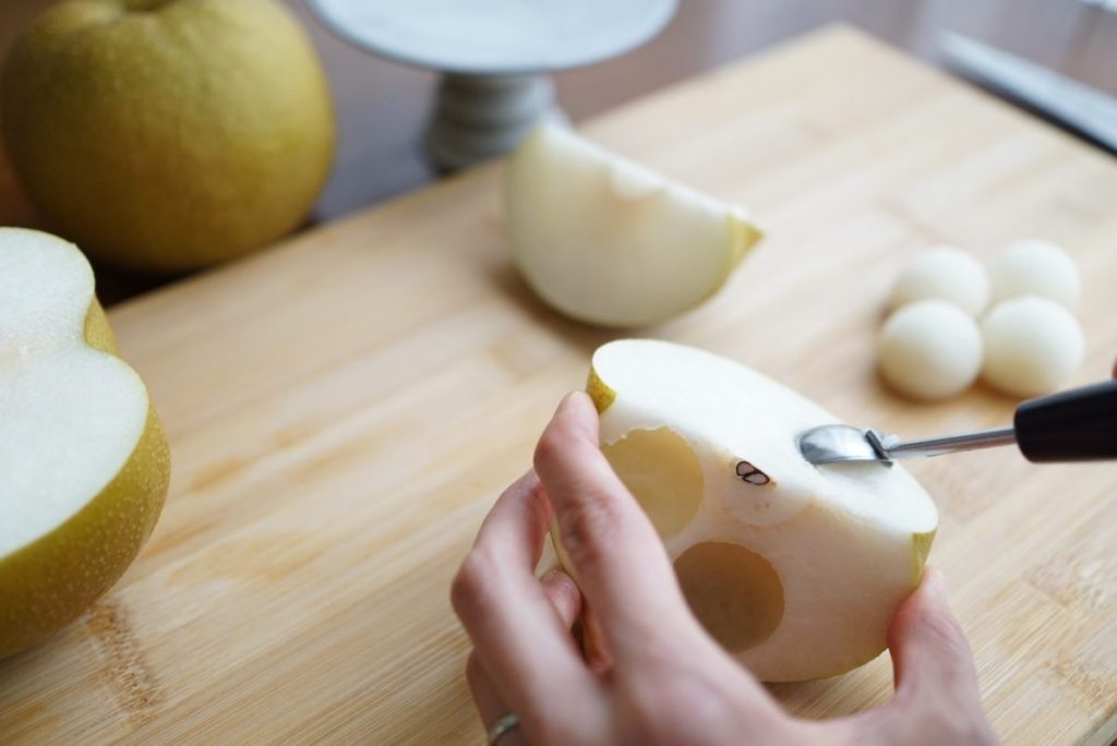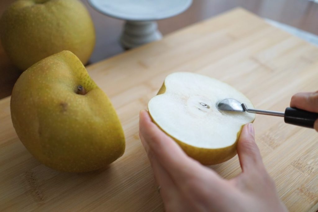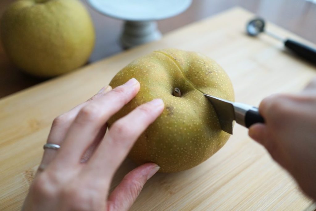 普段は皮をむいてそのまま食べる梨ですが、“お月見”にちなんで、まんまるにくり抜いてみませんか?