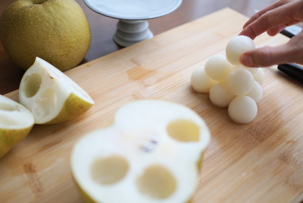 子どもがパクパク食べちゃう! 梨のお団子カッティング
