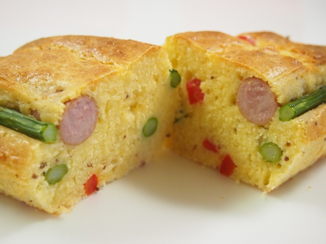 ベーコンやパルメザンチーズと組み合わせると、塩気と香りが引き立ち、おつまみにぴったり。マフィン型で小さく焼けばアペロ(食前のおつまみ)にも活躍します。