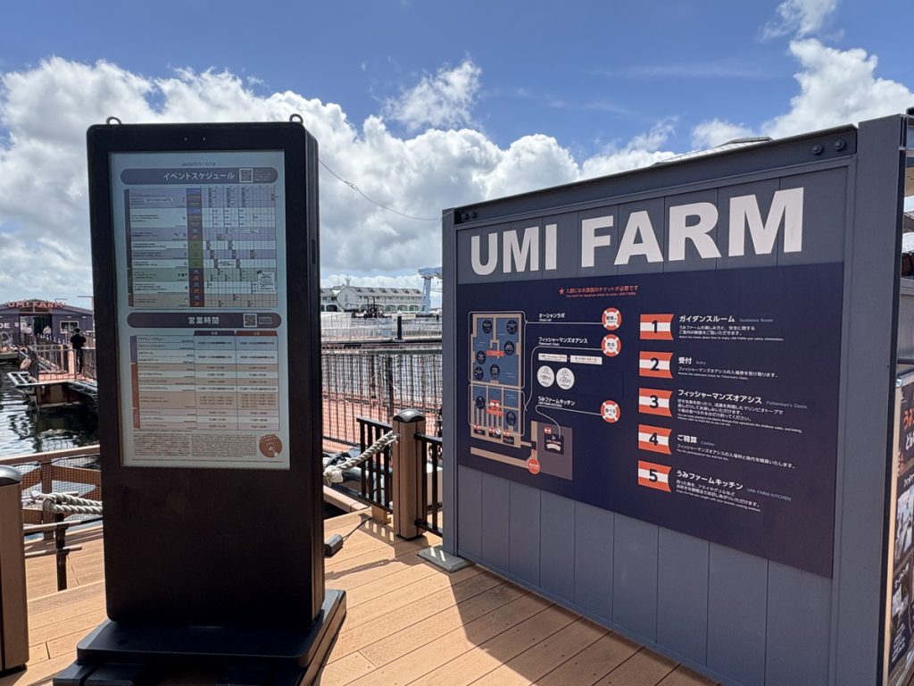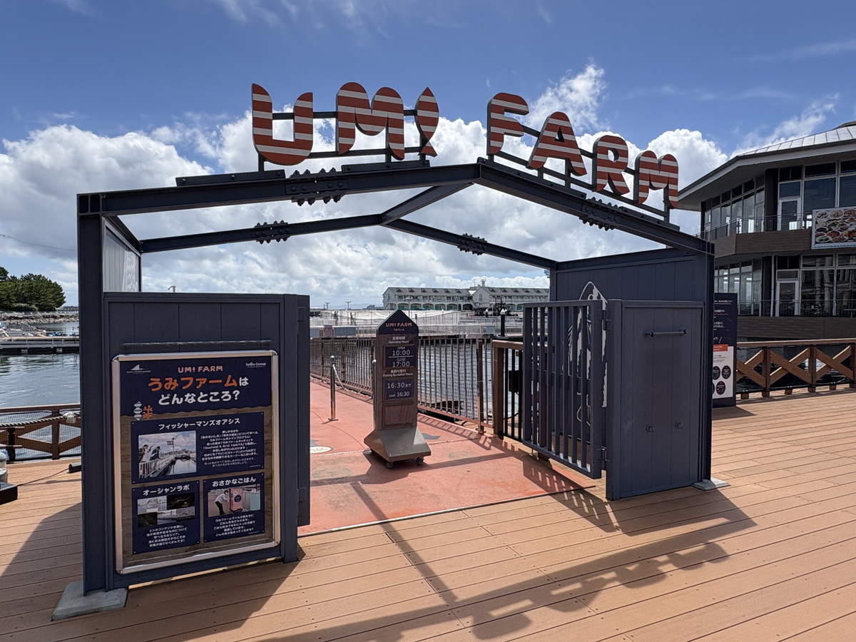 うみファームには桟橋を渡っていきます。横浜・八景島シーパラダイスでは敷地への入場料はなく、アトラクションごとに支払うシステムです。こちらは水族館のアトラクション内になるため、別途水族館入場料が必要です。