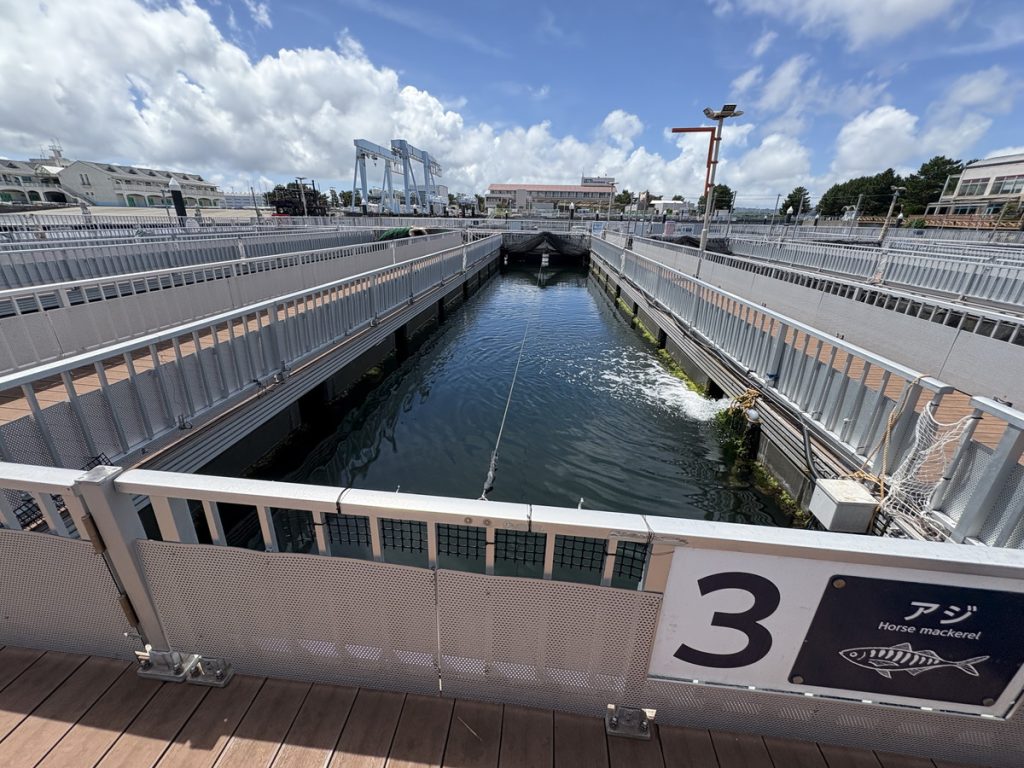 今回は3番のアジがいる生け簀で挑戦。釣ることができるお魚は時期によって変わります。