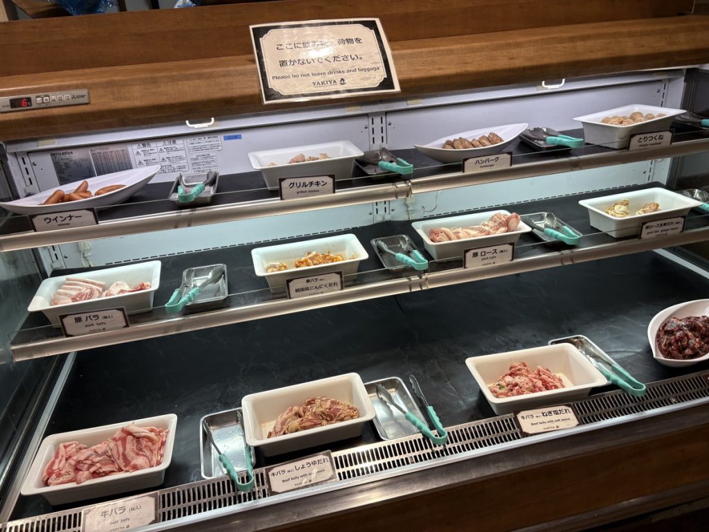 お肉も牛・豚・鶏に加えて、下味がついたものなど豊富にそろっています。アラカルトメニューにはステーキなども。