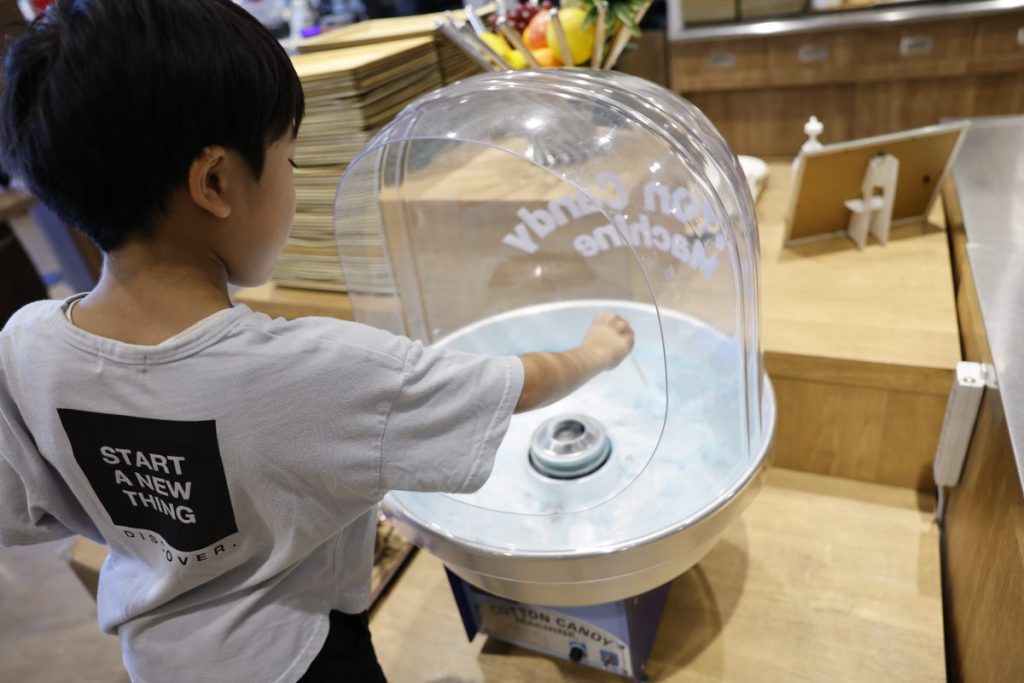 自分で作れるわたあめのコーナーは子どもたちに大人気。