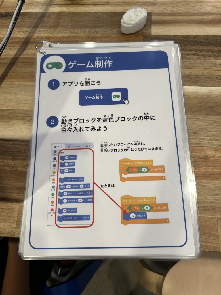 指示が書かれたブロックを組み合わせるだけだから、初心者でも安心してゲームづくりにチャレンジできるのが魅力です。