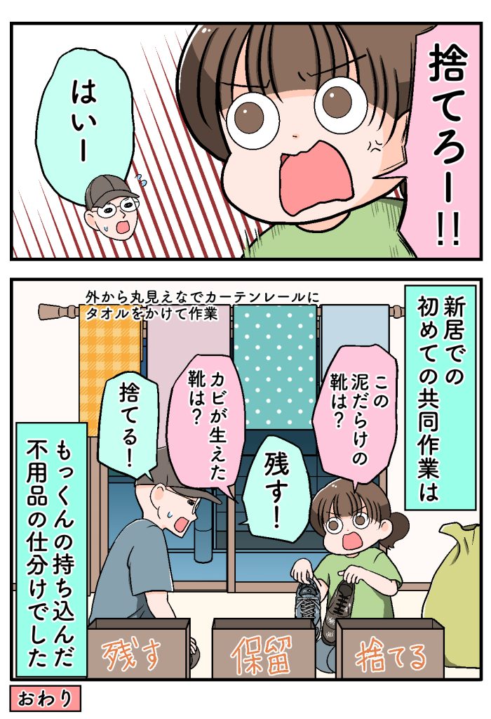なぜか新居でもっくんの荷物の分別が始まりました。