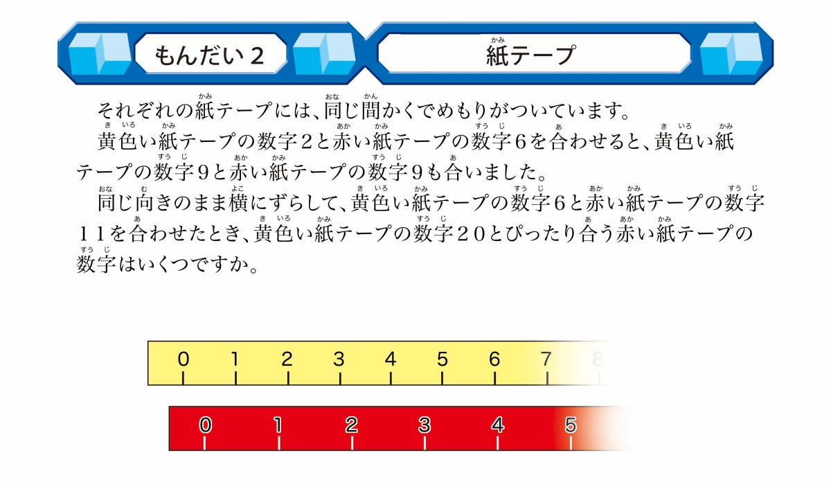 実際、問題は難しいですよ。「もんだい3」の正答率は94.5%ですが、「もんだい2」は正答率13.7%です。7問100点満点で、平均点が37.5点ですから。取り組む最初の頃はぜんぜんできなくてもあたりまえだと思っていただいていいです。できないからダメとかつまらないではなくて、わからない問題に取り組んでゲームを攻略するように解き明かす喜びを味わってもらえればと思います。