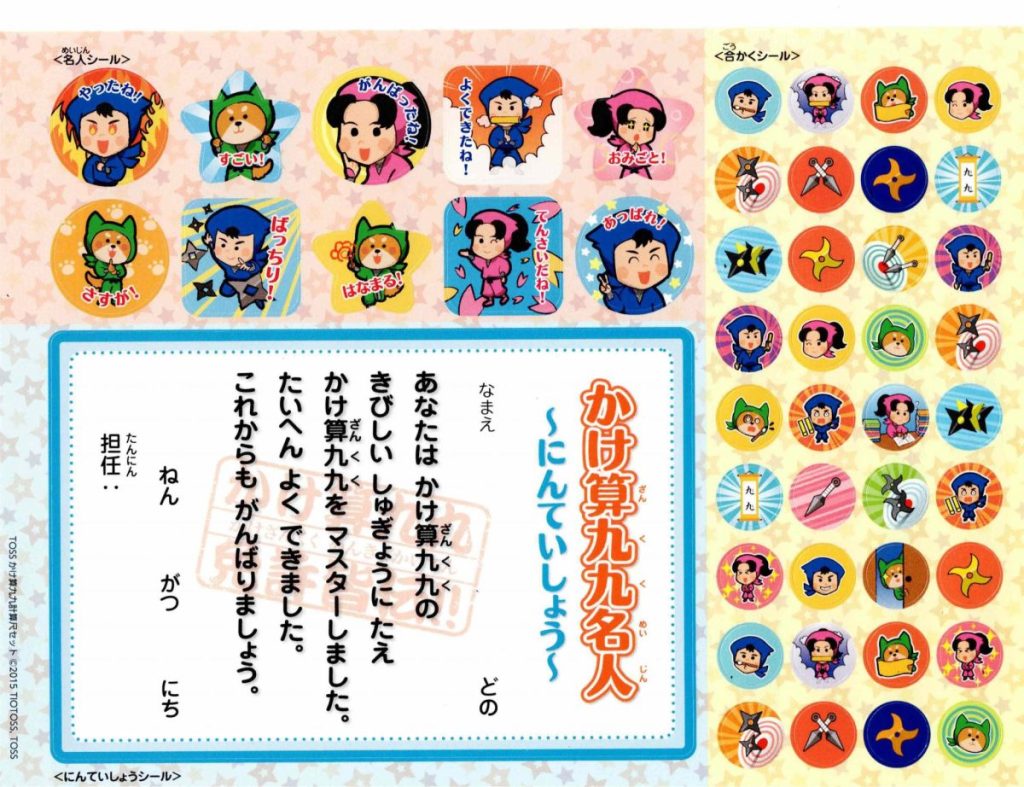 九九の段を1段覚えるごとに、ごほうびとして忍者のシールを貼って達成感を得られます。