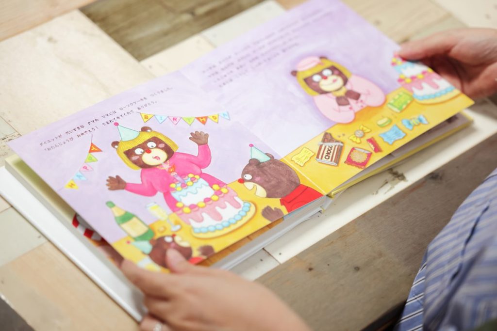 この絵本は、娘がいちばん楽しみにしていた作品なのですが、作中にはダイエットが大好きだと家族に思われているクマのママが登場します。最初のラフでは私と同じ髪型にしていたんです。でもそのクマのママだけ髪の毛があるのは少しおかしいと思って本番では描かなかったんですね。「えっ、なんでクマのママの髪の毛がないの?」と言われて(笑)。結局、髪の毛を描き足して入稿し直しました。娘にとっては自分のママと同じなので、髪の毛がないのは物足りなく感じたんでしょうね。