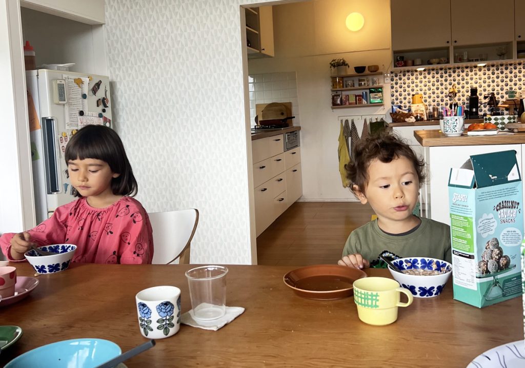 子どもたちの最近の朝ごはんは、スウェーデンの両親が送ってくれたコーンフレーク。