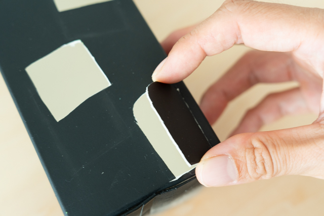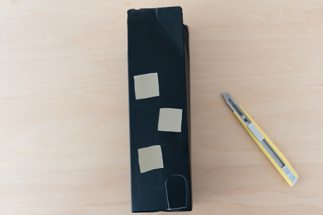 2.  黒い塗料で全体を塗ります。私は、つやなしタイプの黒スプレーを使用しました。しばらく置いて、塗料を乾かします。