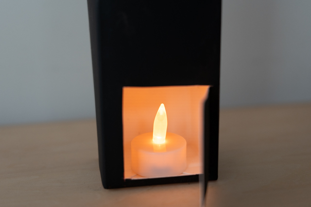 11. 裏側にドアを作り、LEDキャンドルを入れたら、完成です!