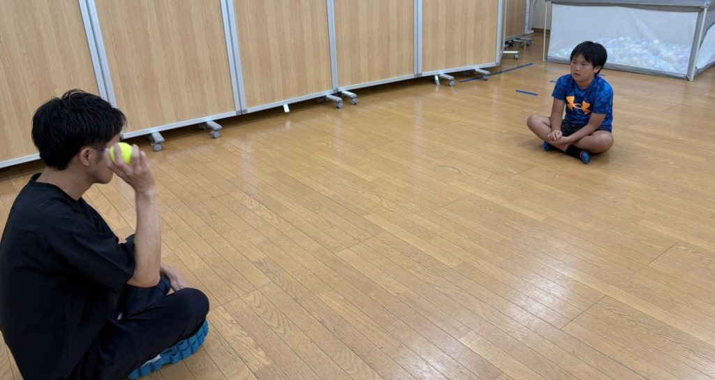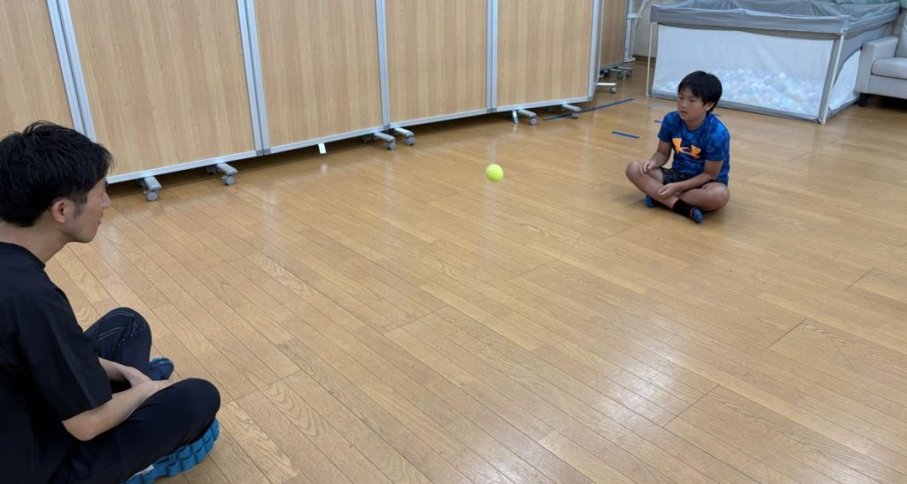 伊藤さん これができるようになったら、ふたりで部屋の端と端にすわって、ボールをワンバウンドさせてキャッチボールをします。スピードはゆっくり。それができたら立ってワンバウンド、ツーバウンドで取る練習をします。受け取る練習になれてきてから、通常のキャッチボールやドッジボールをすると、うまく受け止められる確率が増えます。すわって10回、立って10回をルーティンにしましょう。