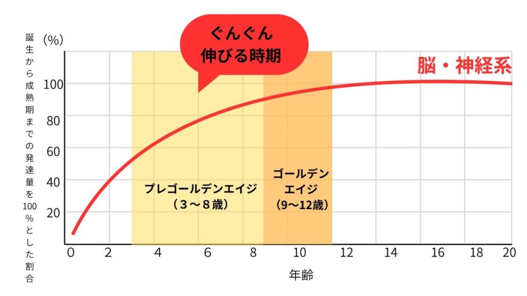 でも、繰り返し練習すれば上手になります。人は一般的に2~4歳で運動神経のネットワークが形成され、8歳くらいまでに発達・成長し、9~12歳くらいに完成します。なかでも3〜9歳ごろまでの時期は「プレゴールデンエイジ」と呼ばれ、この時期にしっかりと運動体験をしておくといいのです。