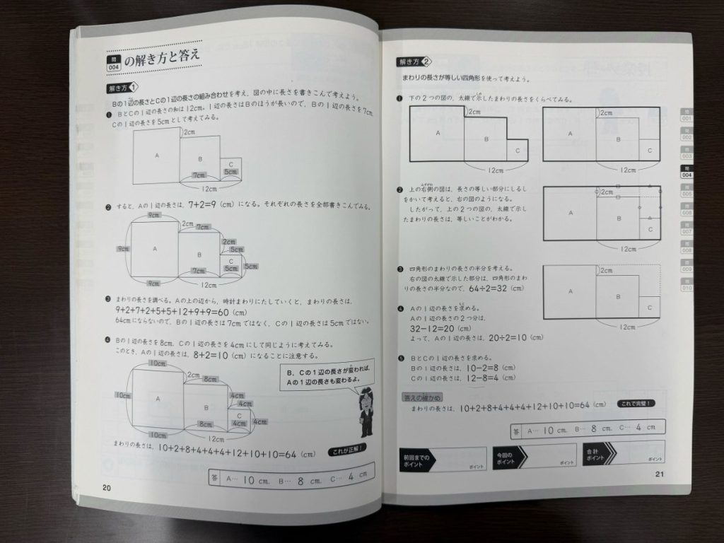 宮本先生:そう。だから、余白がたっぷりある問題集がおすすめです。私がつくった「賢くなる算数」(Gakken)では、見開きに1問だけを載せています。そして、解説には必ず2つの解き方を入れているんです。