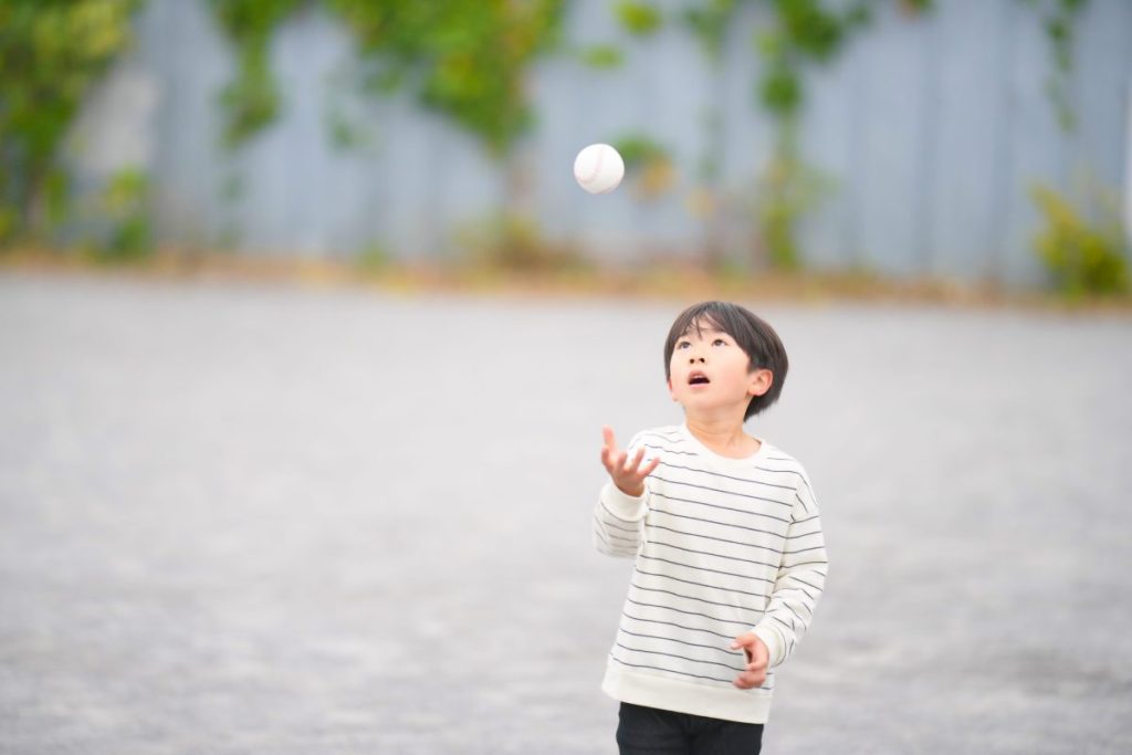 予測や力を抜くことは、最初は難しいかもしれないので、大人がボールを投げるときに「行くよ!」と言って予測のタイミング、準備のタイミングをわかりやすくしてあげたり、ゆるいボールを投げてあげたりして予測しやすくしてあげてください。また、ボールを受け取るときも、「力を抜いたほうがうまくいくよ」と声をかけてあげるといいですね。