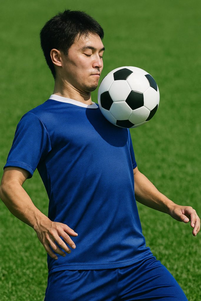 サッカーでは飛んできたボールを胸で受け止めてそれを続けてドリブルしますよね。これをスムーズにできる選手は、胸で受け止めるときに力を抜くんです。力を入れすぎたらボールが足元でなく遠くへ飛んで行ってしまうこともあります。