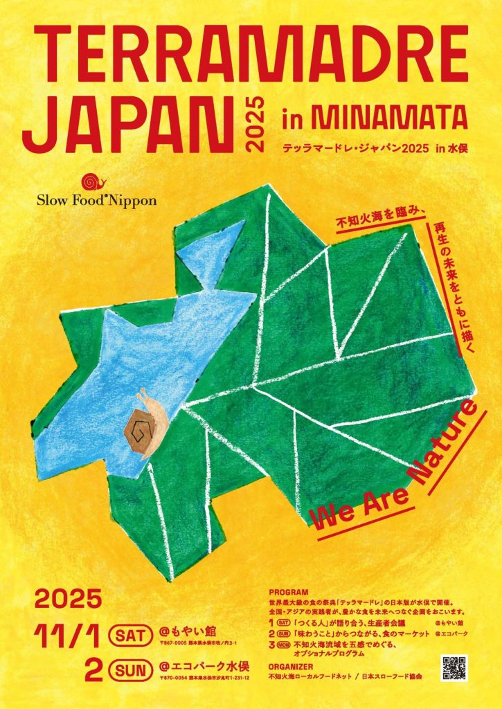 現在、水俣では生産者や料理人たちが地域や立場を越えて協働する”環不知火海ネットワーク”という新たなつながりが生まれています。今回のイベントは、こうした動きを後押しし、食を通して「We Are Nature(わたしたちは自然)」という原点に立ち返り、循環と再生の物語を次世代へ手渡すことを目指しています。