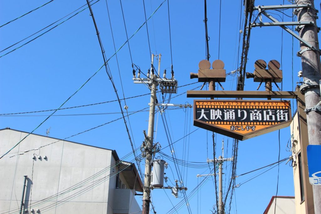 通りには、映画で栄えた街ならではの、カメラモチーフの看板や電灯など、映画にちなんだ仕掛けがちらほら。思わず写真を撮りたくなりますね。