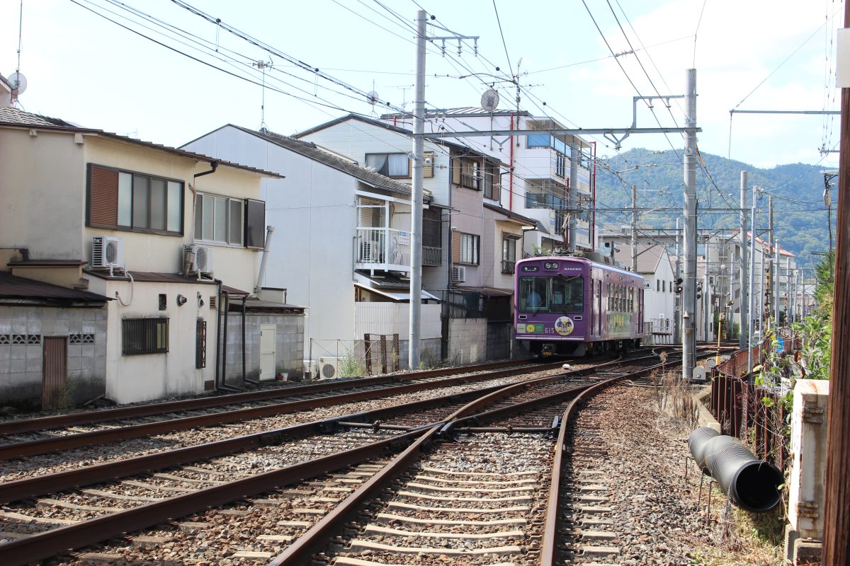 この駅は、嵐山へ向かう嵐山線と、北野白梅町へ向かう北野線の2線乗り入れています。北野白梅町へ向かいたい人はここで乗り換えです。
