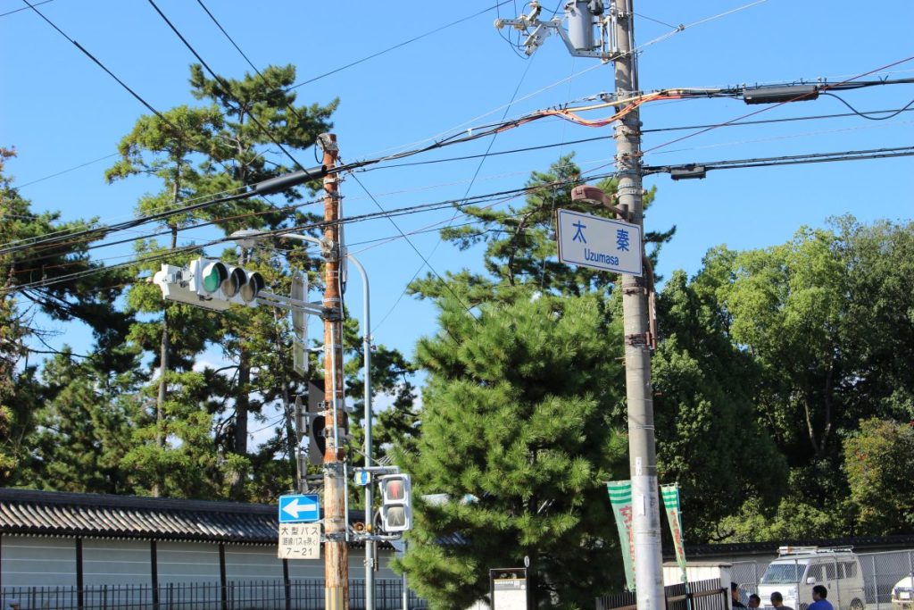 太秦広隆寺駅の周辺は、「太秦(うずまさ)」という地域で、かつては映画の撮影所が集まり、日本のハリウッドとも呼ばれた街です。今でも多くの映画がここ太秦で撮影されています。