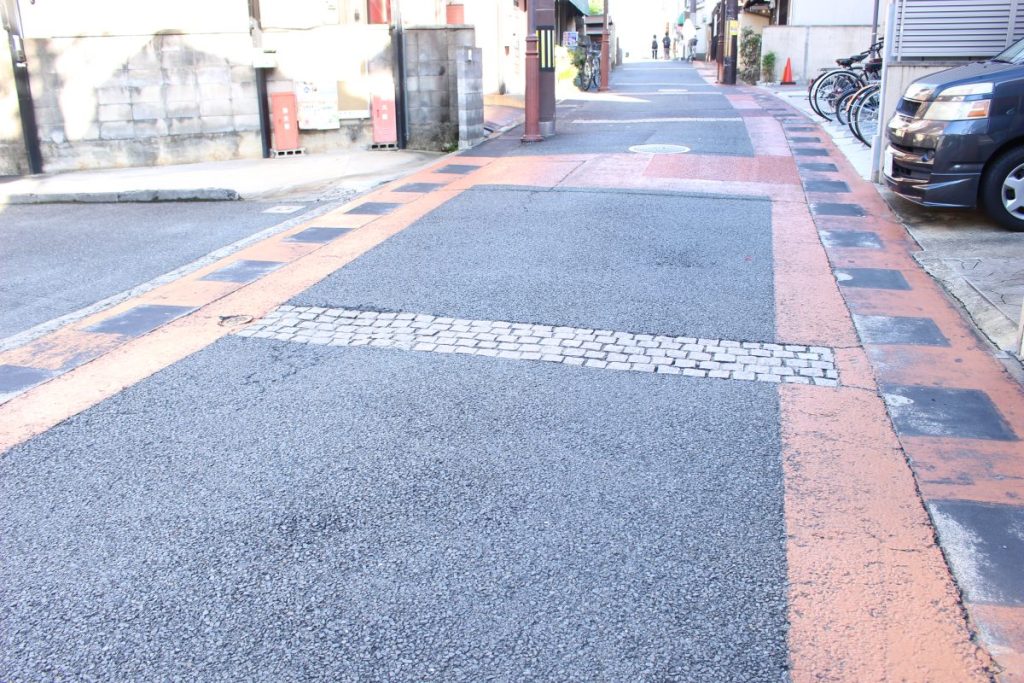 商店街の道路も、映画フィルムのデザインになっています(両端のオレンジの線)!